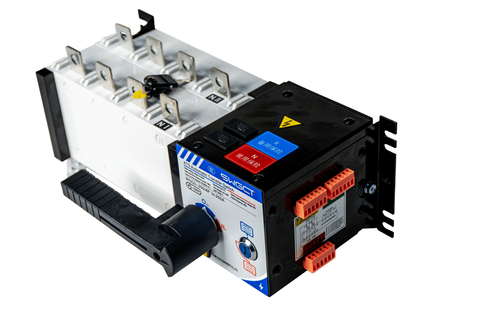 As a Load Isolation Type (PC Class) switch, the WGQ2-250/4P excels in its ability to make and withstand the high thermal and dynamic forces associated with short circuits, relying on upstream protection devices for fault interruption. This fundamental design ensures maximum structural integrity and contact reliability during system disturbances. It integrates a powerful motorized mechanism and a smart micro-processor control unit to deliver automated, secure, and seamless transfer of electrical power between the Normal Source (Utility Grid) and the Alternate Source (Backup Generator or UPS system). The WGQ2-250/4P is the embodiment of intelligent engineering, offering medium-current capacity without compromising on the high safety and performance standards expected in critical power applications.